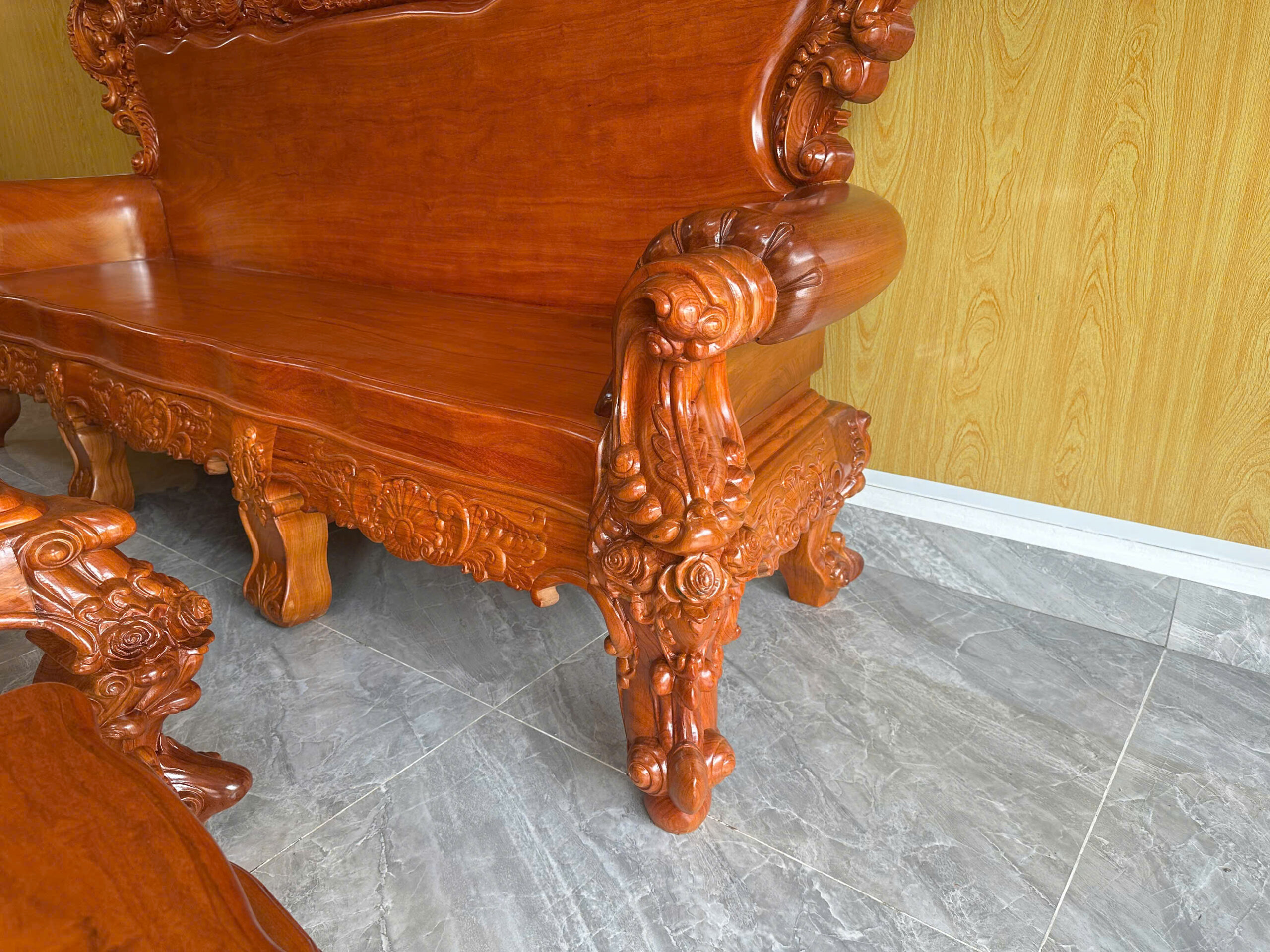 🎬 Xem Video Thực Tế: Bộ bàn ghế hoàng gia gõ đỏ pachy 6 món đã hoàn thiện