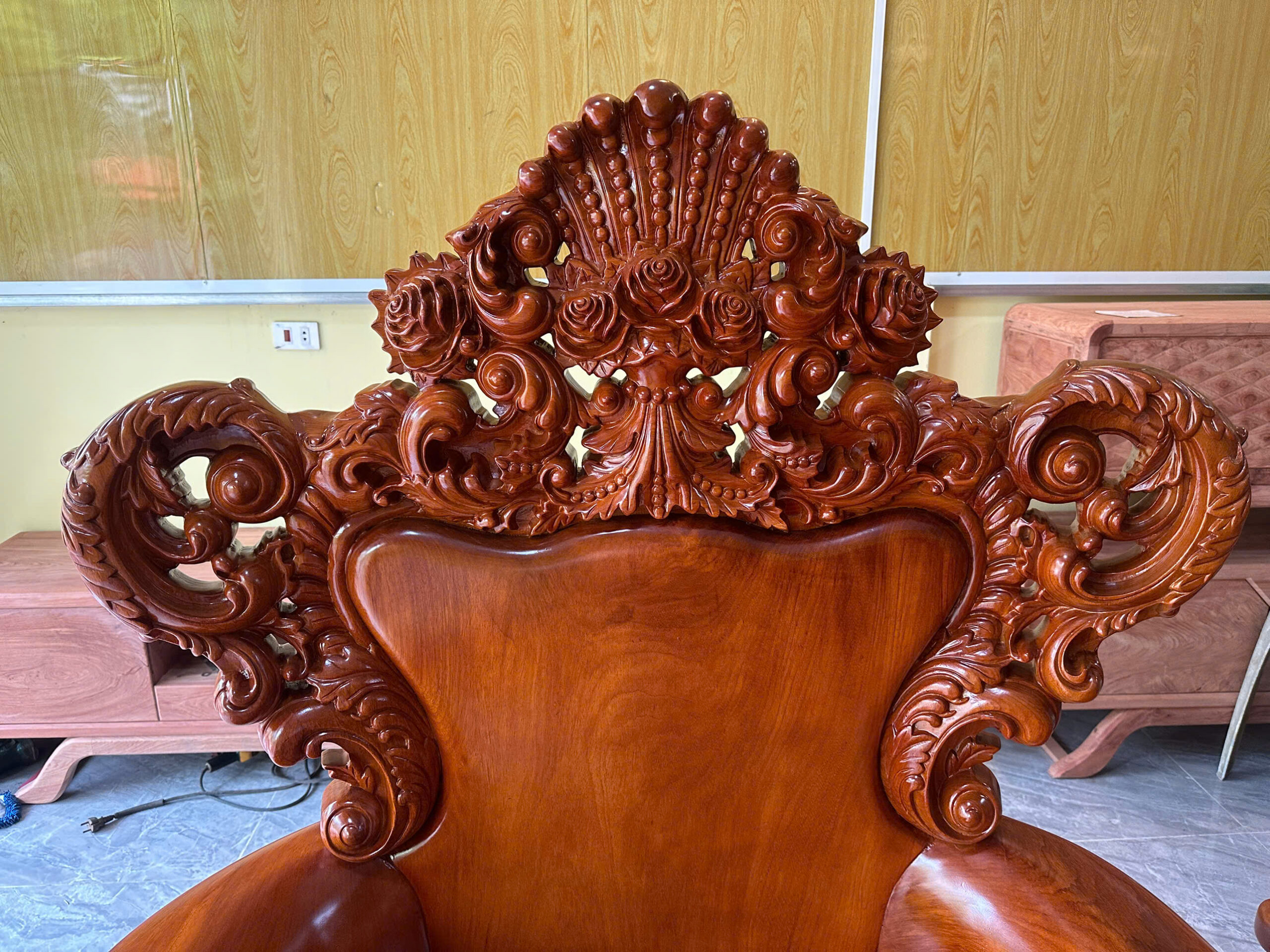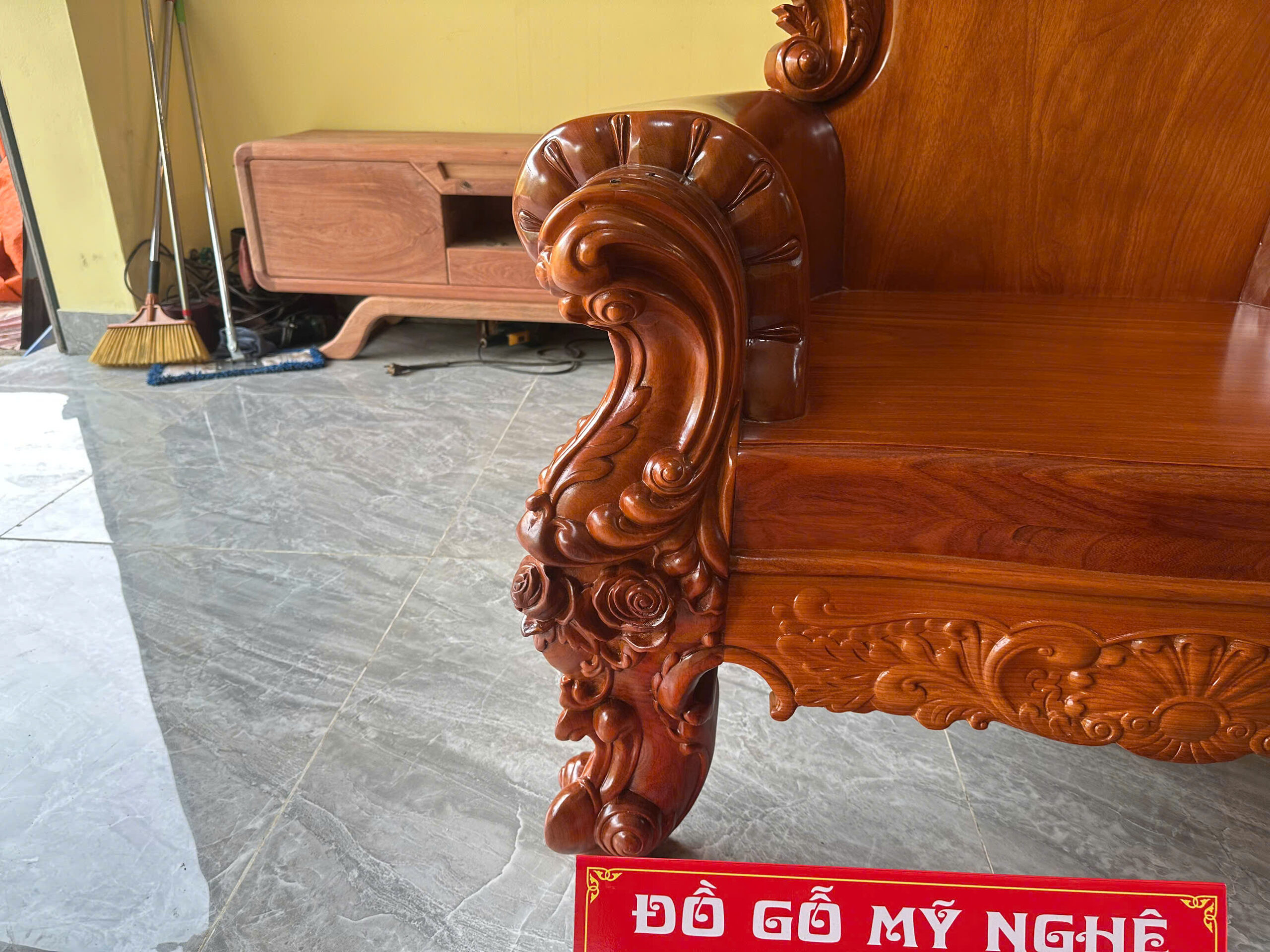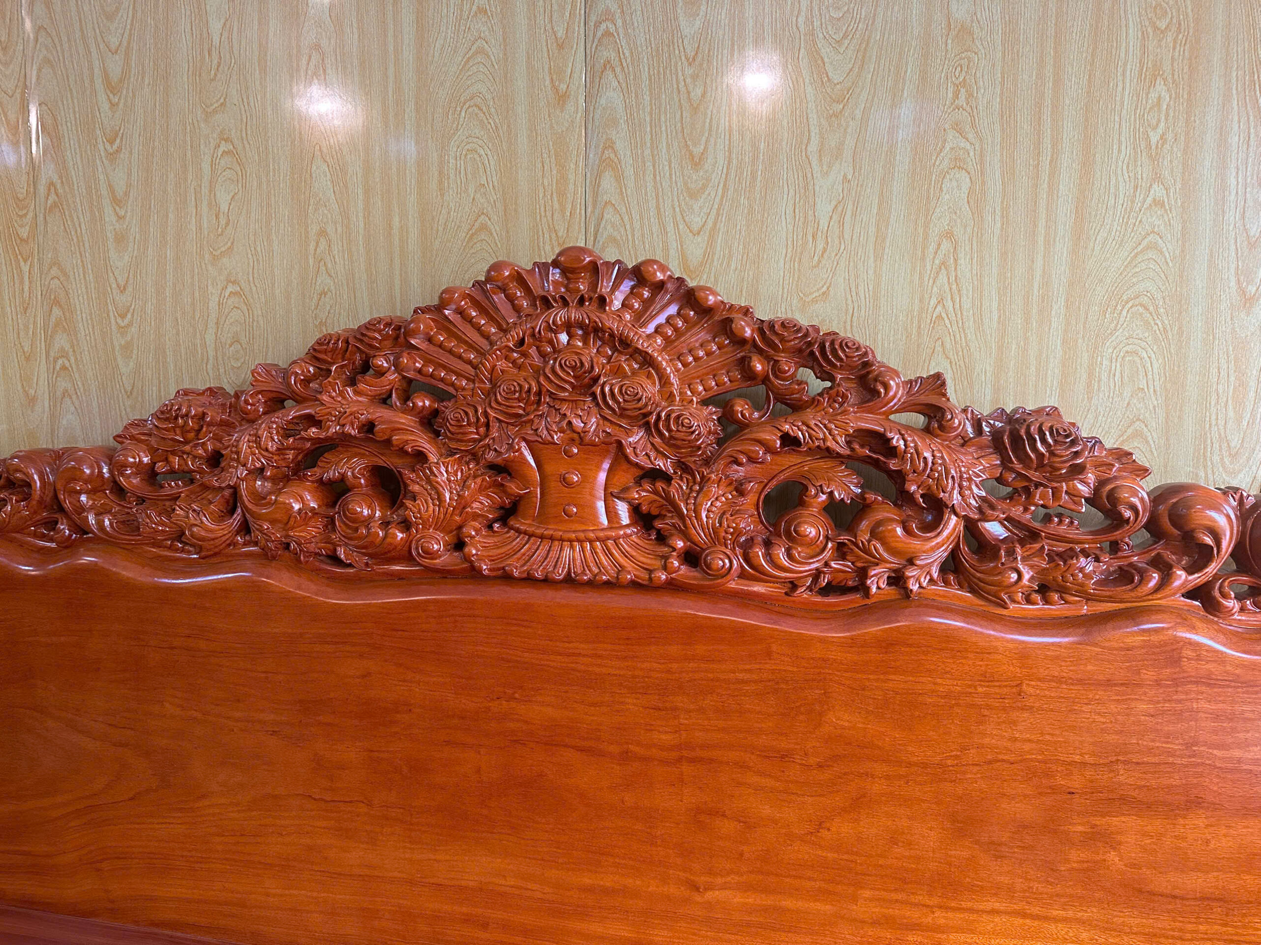 - Nghệ thuật chạm khắc: Hoa văn hoa hồng được đục sâu, tỉ mỉ từng cánh hoa bởi các nghệ nhân tay nghề cao nhất tại làng nghề.