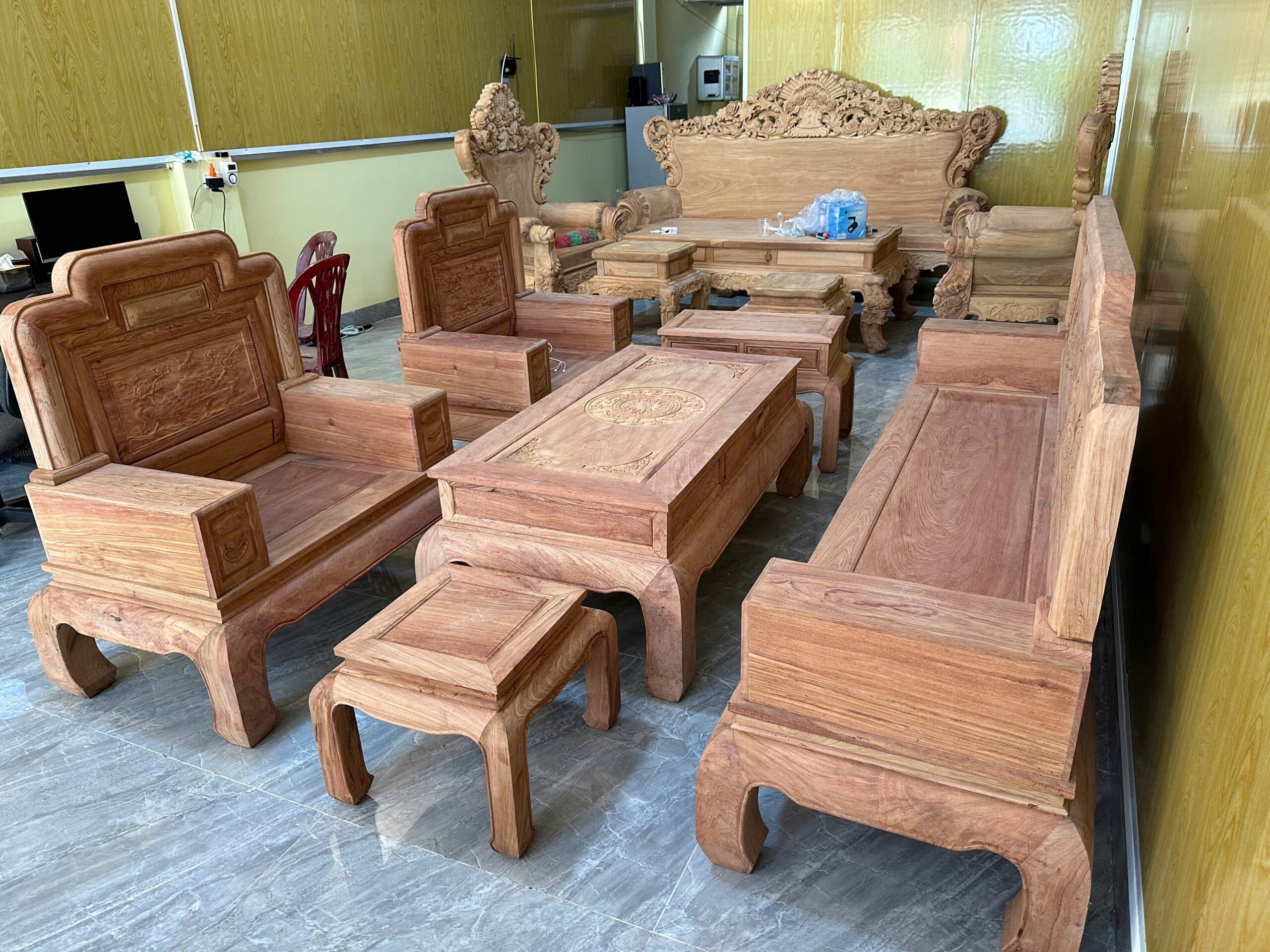 Tại Đồ Gỗ Văn Đoàn, chúng tôi luôn ưu tiên giới thiệu Bản Mộc để quý khách hàng có thể kiểm tra chân thực nhất chất lượng gỗ. Bộ Quốc Sắc Thiên Hương này cam kết không rác, không nứt nẻ, vân gỗ tự nhiên 100% hiện rõ trên từng thớ thịt gỗ.