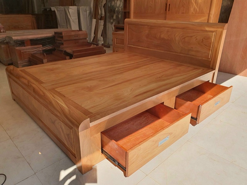 Giường Ngủ Gỗ Hương Đá 1m8x2m Có Ngăn Kéo – Sang Trọng & Tiện Nghi